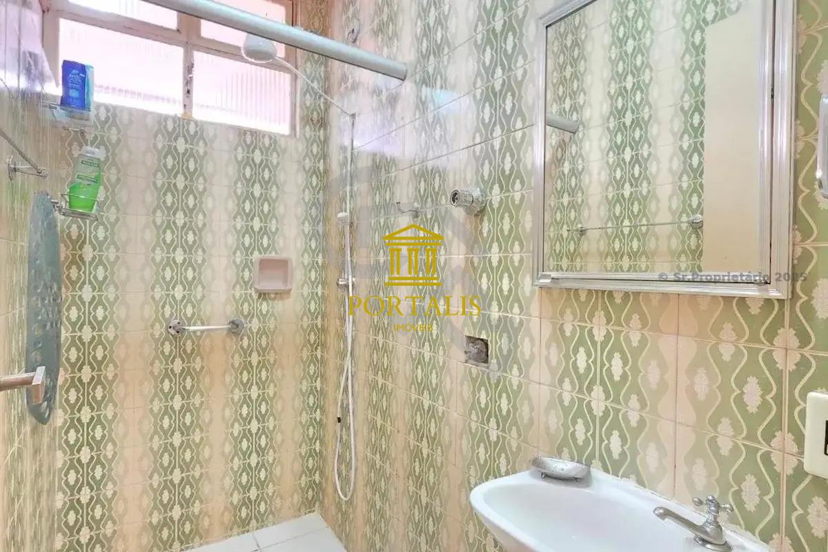 3 quartos amplos, todos com piso em taco de madeira, sendo uma suíte com pia em coluna de apoio e box em blindex