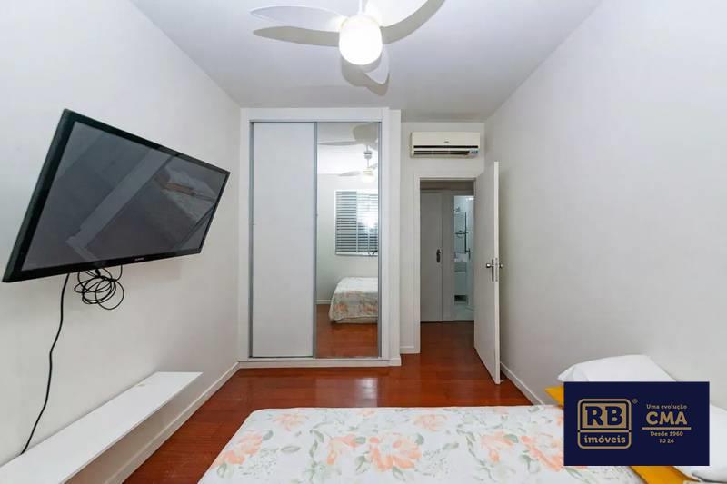 03 quartos com armários planejados e piso em tábua corrida, sendo 01 suíte com ar-condicionado.