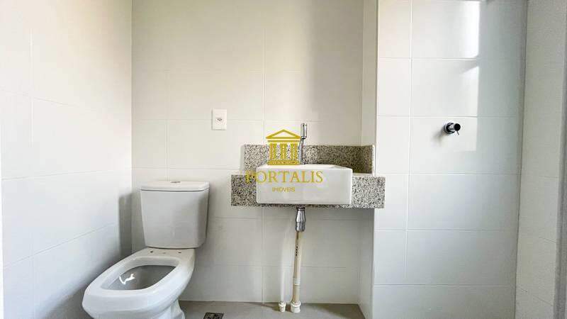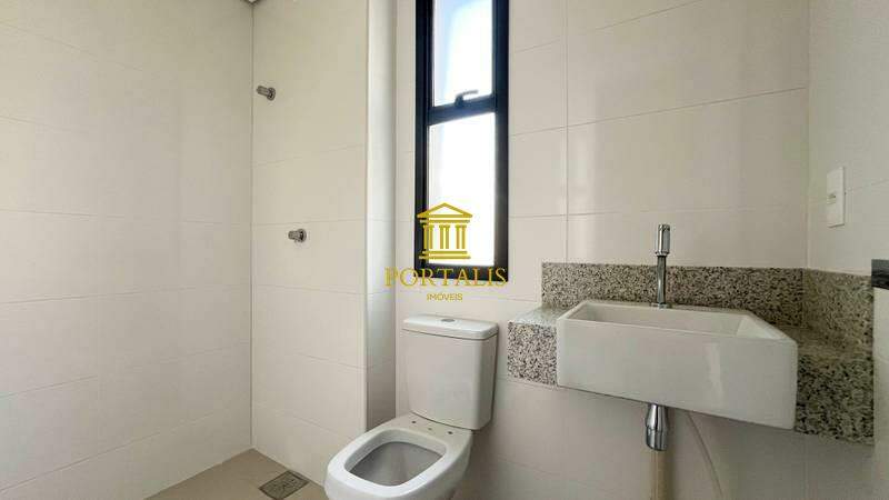 Banheiros (social e suíte) com acabamento premium em porcelanato e bancadas em granito.