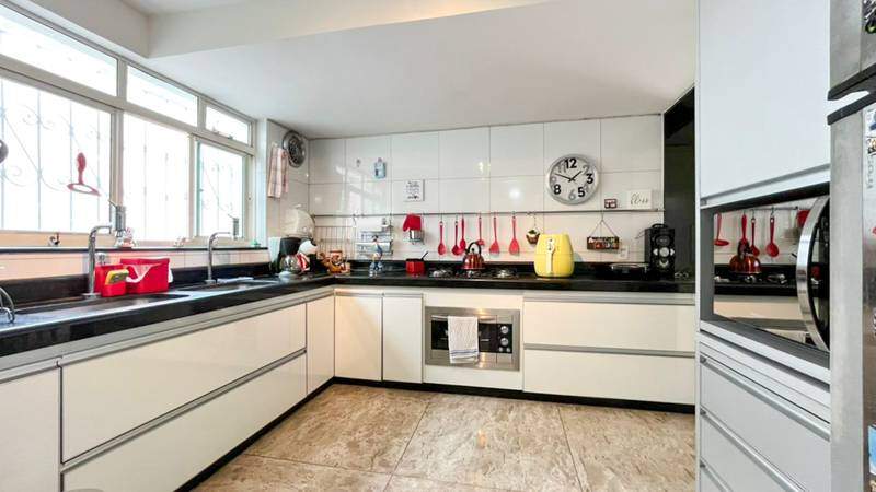 Cozinha espaçosa, com copa, Cook top, forno elétrico, piso em porcelanato, armários planejados e bancada em granito