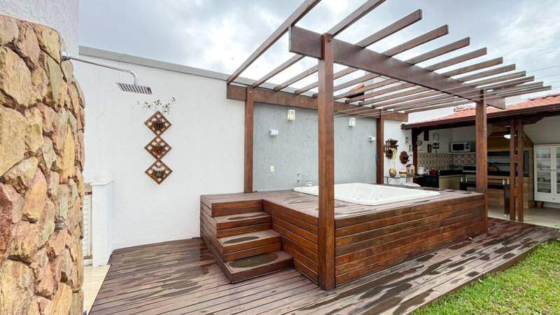 Área externa com excelente quintal gramado nos fundos, muito bem-planejado, com total privacidade, um espaço gourmet com hidro com aquecimento solar, sauna, churrasqueira elétrica e mais um banheiro