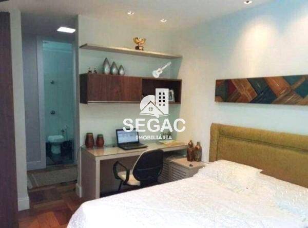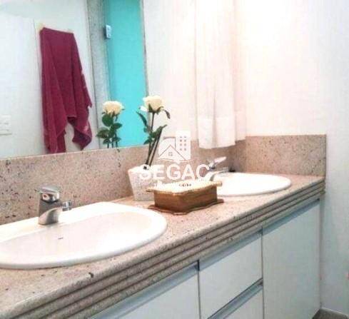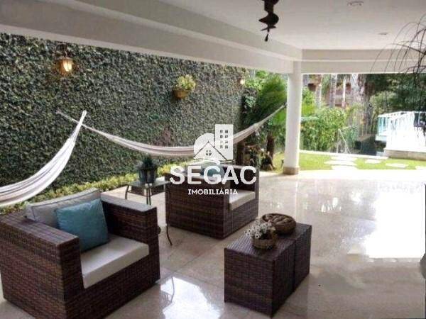 Sala ampla, dividida em 3 ambientes com piso em granito 1,20 x 1,20, rebaixamento em gesso com projeto de iluminação nos ambientes, sendo um grande sala de jantar com saída para a varanda, sala de estar, linda lareira com detalhes em granito, lavabo, copa e cozinha repleta de armários, despensa ampla, área de lavanderia, 2 quartos para funcionários e banheiro de serviço