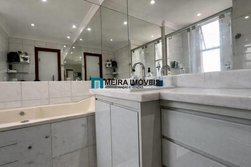 04 quartos com piso em laminado de madeira e armários planejados, sendo 02 suítes com ar-condicionado, além outra suíte máster que se destaca pelo amplo closet e banheira de hidromassagem. Banheiros das suítes equipados com box em vidro blindex, armários sob bancada e acabamento em granito.